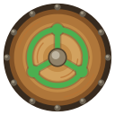 Redesign tray/app icon as a wooden round shield with iron rim, rivets,